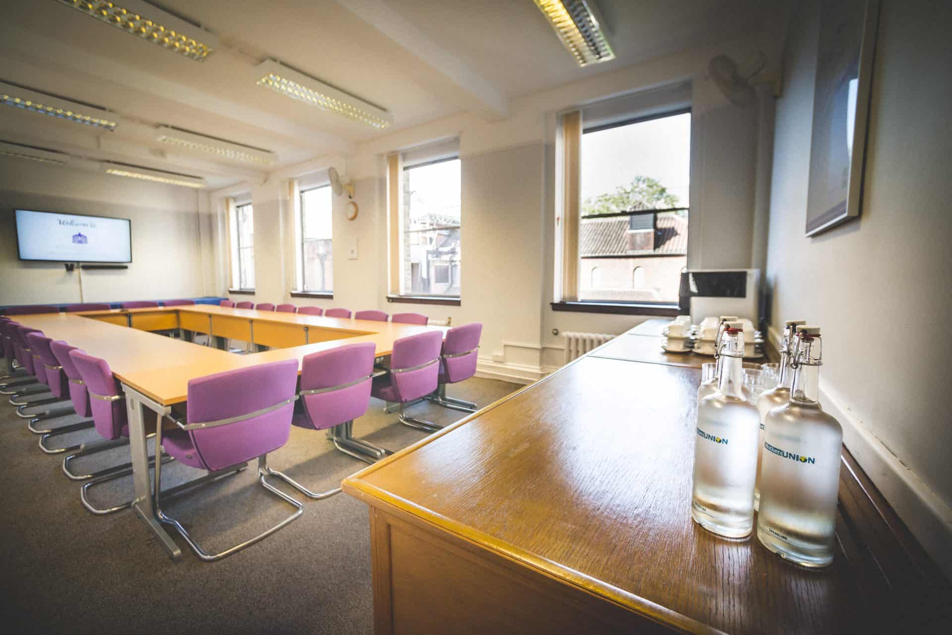 We offer tea/coffee/biscuits/water in our smaller meeting rooms. Lunch for these rooms needs to be ordered from an external caterer as we do not provide in-house catering.